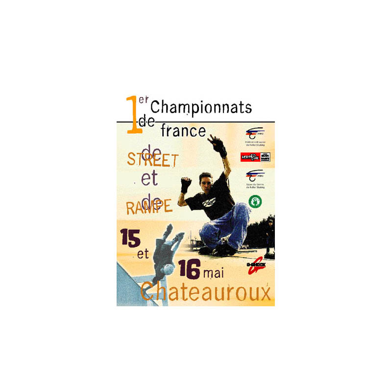 Affiche 60x80 et tracts réalisés pour le 5ème Championnat de france de roller acrobatique, pour la fédération française de roller-skating.