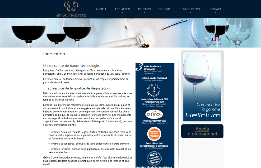 Site et boutique en ligne pour la vente d'un verre de dégustation innovant.